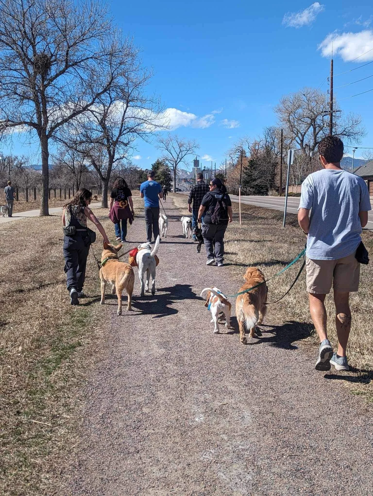 Group walks are designed to allow you and your dog a space to socialize with dogs people and other environmental situations. You can practice training or just hang out and enjoy the scenery as you walk.